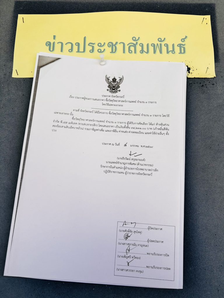 ประกาศผู้ชนะการเสนอราคา จัดซื้อวัสดุวิทยาศาสตร์การแพทย์ จำนวน 3 รายการ โดยวิธีเฉพาะเจาะจง