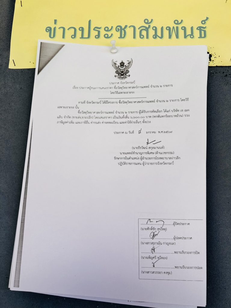 ประกาศผู้ชนะการเสนอราคา จัดซื้อวัสดุวิทยาศาสตร์การแพทย์ จำนวน 2 รายการ โดยวิธีเฉพาะเจาะจง