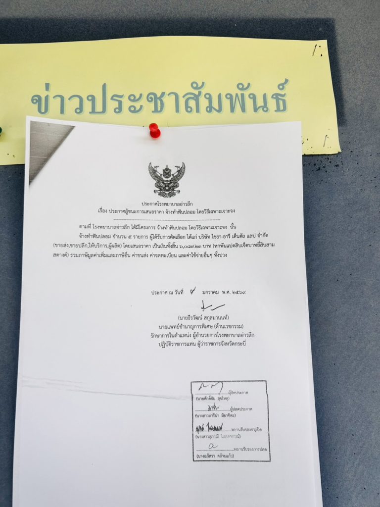 ประกาศผู้ชนะเสนอราคา จ้างทำฟันปลอม จำนวน 5 รายการ โดยวิธีเฉพาะเจาะจง