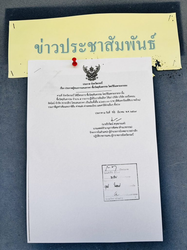 ประกาศผู้ชนะเสนอราคา จัดซื้อวัสดุทันตกรรม จำนวน 5 รายการ โดยวิธีเฉพาะเจาะจง
