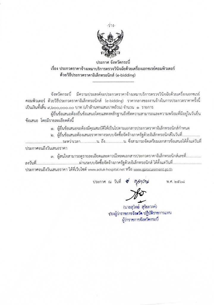 ประกวดราคาจ้างเหมาบริการตรวจวินิจฉัยด้วยเครื่องเอกซเรย์คอมพิวเตอร์ ด้วยวิธีประกวดราคาอิเล็กทรอนิกส์ (e-bidding)