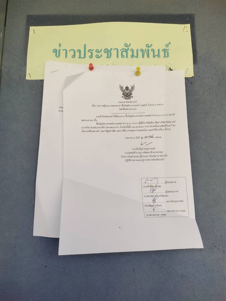 ประกาศผู้ชนะการเสนอราคา จัดซื้อวัสดุวิทยาศาสตร์การแพทย์ โดยวิธีเฉพาะเจาะจง