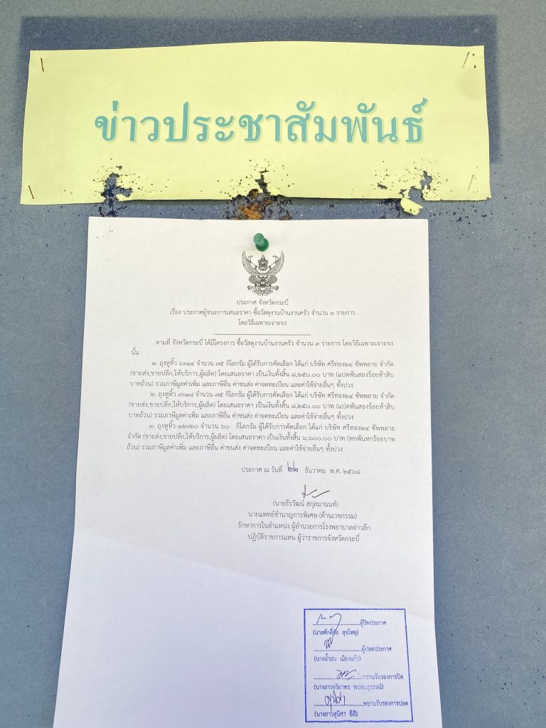 ประกาศผู้ชนะการเสนอราคา ซื้อวัสดุงานบ้านงานครัว จำนวน 3 รายการ โดยวิธีเฉพาะเจาะจง