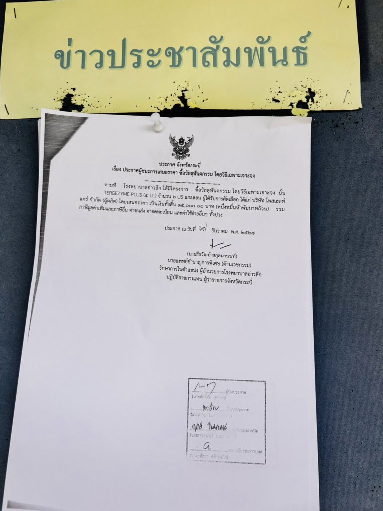 ประกาศผู้ชนะเสนอราคาจัดซื้อวัสดุทันตกรรม จำนวน 1 รายการ